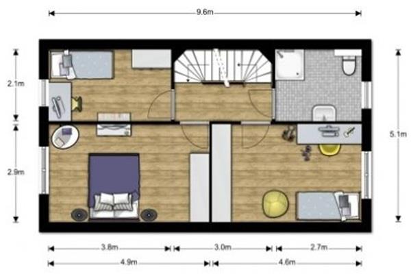 Op de 1e verdieping bevinden zich 3 slaapkamers en de moderne badkamer met douche, wastafel en 2e toilet.