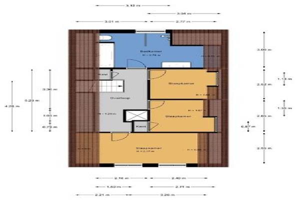 Eerste verdieping: Overloop, 3 slaapkamers, badkamer met bad, douche en toilet. Veel bergruimte aanwezig