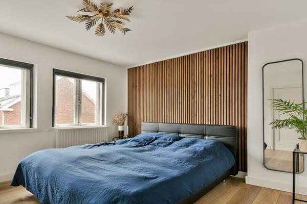 Overloop met toegang tot drie slaapkamers (twee ruime en één kleinere). Moderne badkamer voorzien van een inloopdouche, wastafelmeubel en tweede toilet.