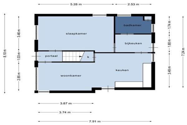 Begane grond: entree/hal met toegang naar de slaapkamer, woonkamer en trap naar de eerste verdieping. De knusse woonkamer is voorzien van een half open keuken met een 4-pits gasfornuis, vaatwasser en koelkast. Vanuit de keuken is de trapkast te bereiken en de bijkeuken. De bijkeuken geeft toegang tot de badkamer, welke voorzien is van een douche, toilet en wastafel.