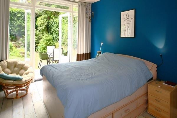 Via een trap naar beneden, bereikt u de woonlaag dat toegang verschaft tot de grote achtertuin. Deze kan via openslaande deuren vanaf de masterbedroom worden bereikt. Ook de gezellige 2e slaapkamer biedt toegang tot de tuin. In het midden van de beneden etage bevindt zich een ruime badkamer met zowel een badkuip als douchecabine. De badkamer beschikt tevens over een brede wastafel en ziet er schitterend uit. De 3e slaapkamer bevindt zich aan de voorzijde en is voorzien van een slaapbank en een bureau en ramen waarmee het licht vanuit de Obrechtstraat, mooi naar binnenvalt.