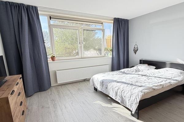 Op de eerste verdieping kom je via de ruime overloop terecht in de grote slaapkamer aan de voorzijde van het huis. Tevens is hier een tweede slaapkamer met inbouwkast, een ruime badkamer met inloopdouche en 2e toilet, wasruimte en een inbouwkast op de overloop.