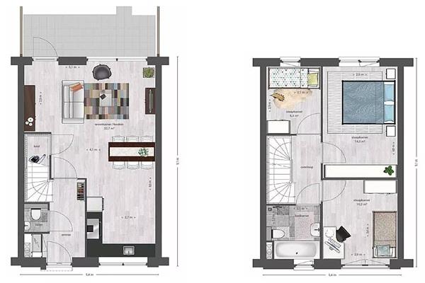 De woning heeft een oppervlakte van 111 m2. De woning heeft een ruime, lichte woonkamer van met open keuken. De keuken is uitgerust diverse inbouwapparatuur. In een separate ruimte vind je het toilet. Via de hal bereik je middels de trap de 1e verdieping. Hier bevinden zich de 3 slaapkamers. Ook tref je hier de badkamer welke is voorzien van een douche, bad, designradiator, toilet en wastafel. Via de trap bereik je de 2e verdieping van de woning hier vindt je de 4e slaapkamer. De auto parkeer je gemakkelijk bij de woning.