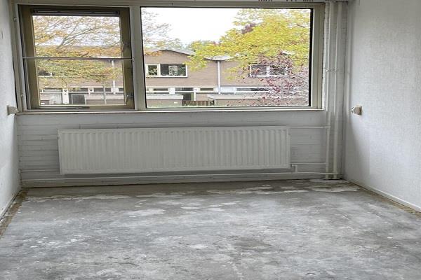 Lichte woonkamer door de grote raam aan de achterzijde en de loopdeur richting de achtertuin. Tevens is er vanuit de woonkamer toegang tot de trapkast. De half open keuken is ingericht met een vaatwasser, gasfornuis, afzuigkap en voldoende kastruimte.