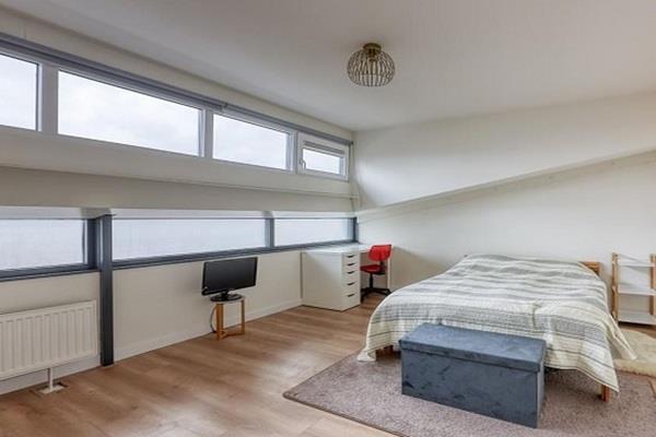 De royale woonkamer is smaakvol ingericht en beschikt over een airco. Daarnaast is er een overvloed aan natuurlijk licht dankzij de grote raampartijen. Via de dubbele deuren wordt de riante, zonnige tuin van ca 40 m2, gelegen op het zuidwesten, betreden. De tuin beschikt over een ruime schuur en een achterom.
