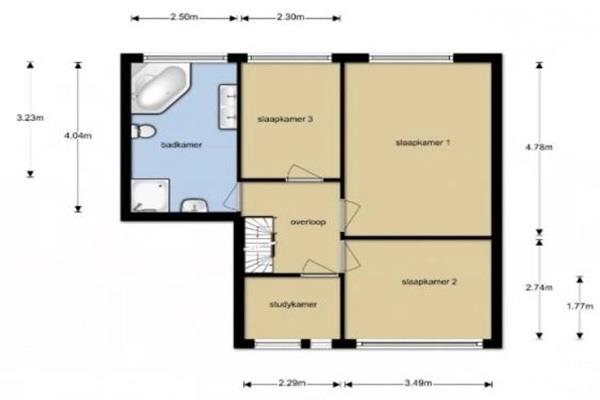 Op de eerste verdieping vind u drie slaapkamers en een studeerkamer. Alle slaapkamers zij voorzien van een bed, kledingkast en neutrale muren.