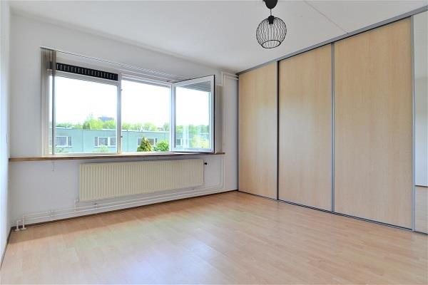 Overloop met toegang tot twee ruime slaapkamers en de badkamer. De hoofdslaapkamer (ca. 15 m²) ligt aan de rustige achterzijde van de woning. De tweede slaapkamer bevindt zich aan de voorzijde. De centraal gelegen badkamer is uitgerust met een douche, wastafel, tweede toilet en aansluiting voor wasmachine en droger.