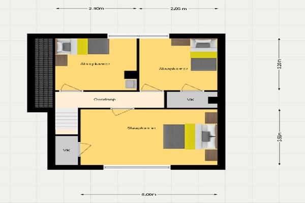 Overloop, drie slaapkamers waarvan twee v.v. een wastafel en vaste kast.