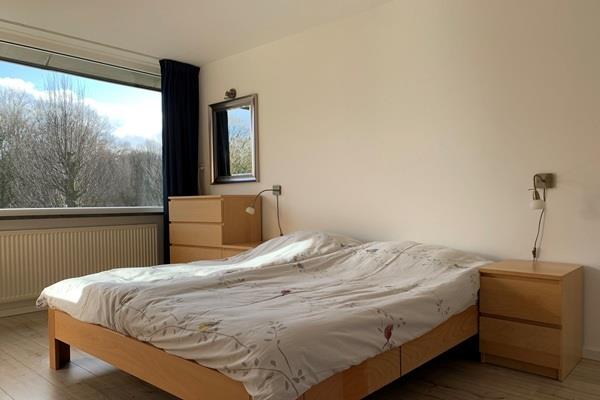 Voorzolder met cv-ketel en witgoedaansluitingen, ruime slaapkamer met wastafelmeubel en kastenwand