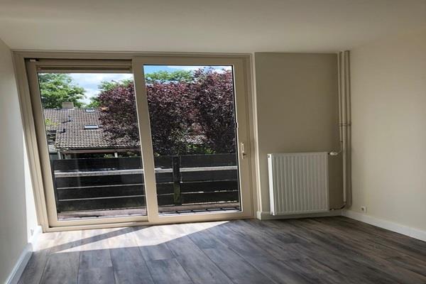 Slaapkamer I: gelegen aan de achterzijde, voorzien van laminaatvloer, stucwerk wanden en een grote schuifpui naar balkon.