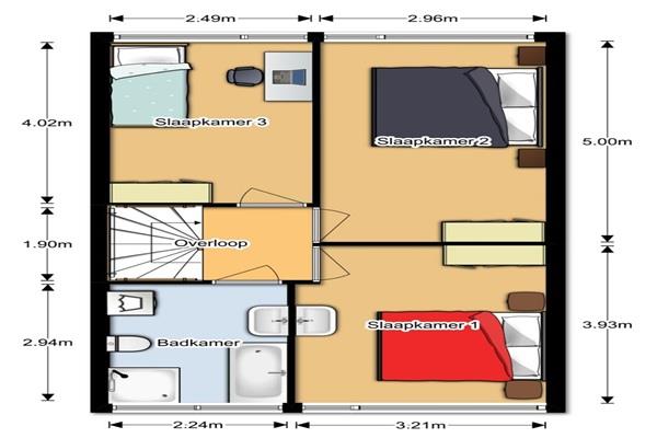 Overloop, 3 slaapkamers, badkamer met 2e toilet