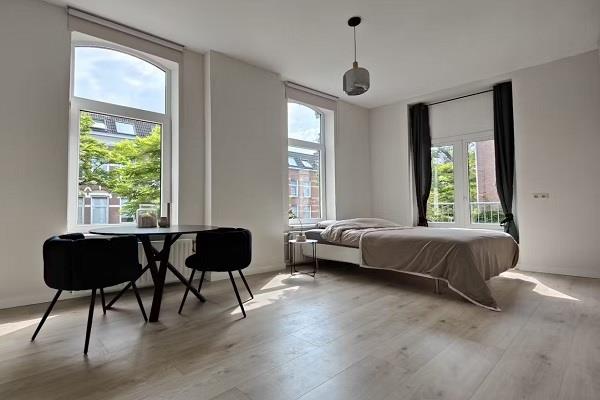 *inclusief tweepersoonsbed, tafel, twee stoelen, inbouwkasten en toegang tot het balkon.