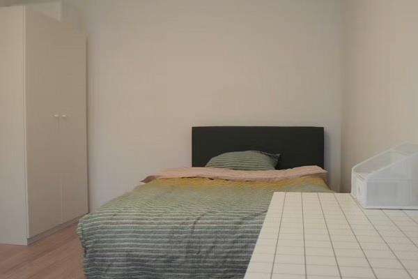 De keuken, badkamer en twee toiletten worden gedeeld met drie andere studenten.