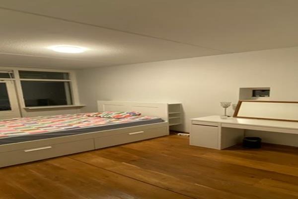 De ruime en lichte woonkamer is voorzien van een houten vloer. Vanuit de woonkamer heeft u toegang tot het balkon op het zuidwesten, waar u kunt genieten van de middag- en avondzon.