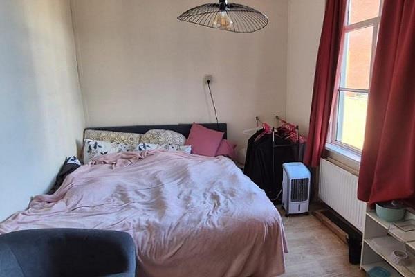 Deze is ongeveer 20 m2 en is speels ingedeeld, er ontstaat een L-vormige kamer door de aansluitende (slaap)kamer. De kamer is voorzien van een nette laminaatvloer en een wasbak.