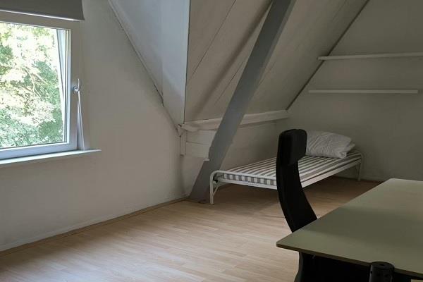 De kamer is volledig gemeubileerd met een bed, matras, bureau, stoel en kledingkast.