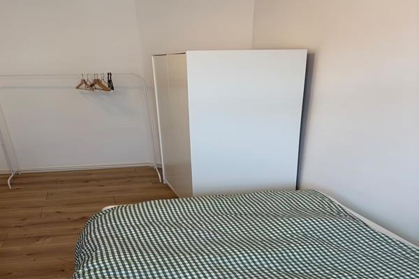 De bevindt zich op de eerste verdieping. De keuken is voorzien van inbouwapparatuur. Er is een gedeelde badkamer en een apart gedeeld toilet. De kamer kijkt uit op de straat. Het is uitgerust met een bed, nieuw beddengoed, een bureau en een bank. Ook is er een balkon dat gedeeld wordt met één huisgenoot.