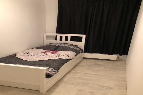 De beschikbare kamer is volledig gemeubileerd met een bed, kledingkast en lades.