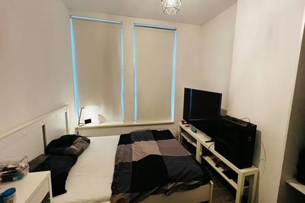 De beschikbare kamer is volledig gemeubileerd met een bed, een kledingkast en lades.
