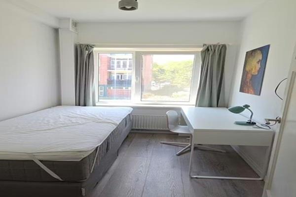 Dit is de kleinste kamer in een appartement met 3 slaapkamers. De kamer is 6,01 vierkante meter groot. De kamer wordt privé gehuurd door de huurder en is voor zijn/haar exclusief gebruik. De kamer is voorzien van een boxspringbed van 90 cm x 200 cm, een bureau, een stoel, een kledingkast en een inbouwkast.