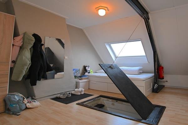 De badkamer, het toilet en het dakterras worden gedeeld met de overige bewoners van de woning (in totaal vijf).