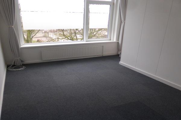 De studentenkamer is voorzien van een wastafel en vloerbedekking.