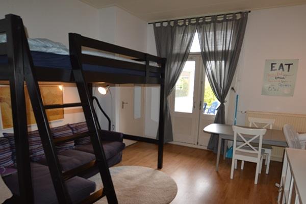 De betreffende kamer bevindt zich op de begane grond aan de achterzijde van het pand. Aangrenzend vindt u de keuken en badkamer welke gedeeld worden met 3 andere vrouwelijke medebewoners. Ook is er een ruime tuin aanwezig welke gedeeld wordt, deze bevindt zich op het zuid oosten. Via de kamer kunt u ook direct naar de tuin vanwege de openslaande deuren.