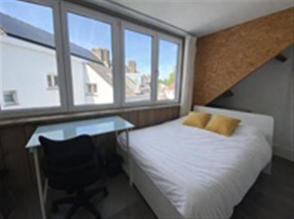 De kamer is ruim en licht dankzij de grote ramen, wat zorgt voor een prettige woon- en studieomgeving. Daarnaast beschikt de kamer over een eigen wastafel, wat extra comfort biedt in het dagelijks gebruik. Door de praktische indeling is er voldoende ruimte voor zowel een slaapgedeelte als een plek om te studeren. Let op: een matras is niet inbegrepen en dien je zelf te verzorgen.