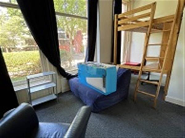 De kamer heeft grote ramen waardoor er veel licht naar binnen valt en is tevens gesausd. De kamer is zeer hoog. Aan de buitenkant is een zonwering bevestigd waardoor je in principe geen gorijden hoeft te kopen. Op de vloer ligt tapijt en er is een authentieke schouw aanwezig. De badkamer en keuken worden gedeeld met 2 huisgenoten.