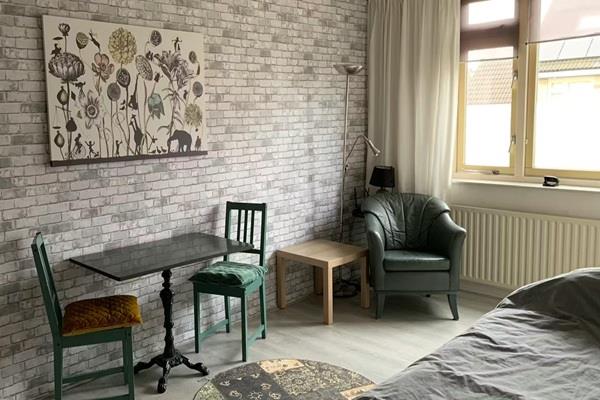 Mooie grote kamer met veel licht. De kamer is ingericht met een eenpersoonsbed, voorzien van kussen, dekbed en 2 sets dekbedovertrekken. Onder het bed zitten twee lades. Voor je kleding is er een kledingkast met aan de ene kant kleding hangend en aan de andere kant planken. Eten of je huiswerk maken kun je aan tafel, wil je even ontspannen dan staat er ook een lederen stoel. Op dezelfde verdieping als de kamer bevindt zich de badkamer die je deelt met mij en een andere huurder. Koken is een verdieping hoger. Deze keuken deel je met de andere huurder. Ik heb mijn eigen keuken. In de keuken bevindt zich een inductiekookplaat, combimagnetron, waterkoker en een koelkast. Ook vind je hier alles wat je nodig hebt om te koken.