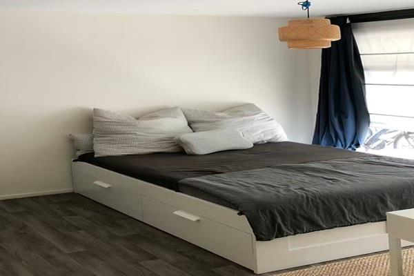 - Grote moderne woonkamer met een grote moderne keuken + grote koelkast