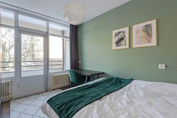 Goed onderhouden 4-kamer appartement op de 2e verdieping in een appartementen complex. Het bevat 3 aparte slaapkamers; deze kamer is gemeubileerd en geschikt voor 1 persoon. Het heeft een balkon, die eigenlijk voor gezamenlijk gebruik bestemd is; het balkon is ook via de badkamer bereikbaar.