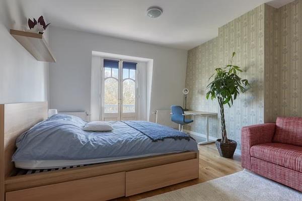 Dit in 2018 gerenoveerde en luxe appartement is gelegen in een chique wijk, ideaal gelegen tussen het stadscentrum en Scheveningen. De kamer beschikt over een klein, eigen designbalkon en een gedeeld balkon aan de achterzijde van de verdieping. De kamer kijkt uit op een stadsgracht. De geïsoleerde vloer van de kamer is voorzien van nieuw, hardhouten parket. De kamer is voorzien van een tweepersoonsbed, een kledingkast, een onderkast, een bureau, een tapijt en een fauteuil (niet op de foto's). Het appartement is van alle gemakken voorzien: een luxe keuken met stoomoven, Amerikaanse koelkast, een Japans toilet en nog veel meer!