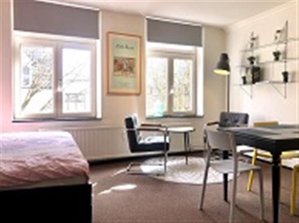 De kamer bevindt zich op de tweede verdieping en is volledig gemeubileerd. De grote ramen zijn voorzien van dubbel glas en hebben een draai-kiepfunctie. Door de gunstige ligging op het zuiden geniet deze kamer van veel lichtinval. De keuken is voorzien van een koelkast met vriezer, een magnetron, een gaskookplaat en een afzuigkap. Kookgerei, servies en bestek zijn eveneens aanwezig. De kamer is gemeubileerd met een ruim bed (140cmx200cm), een eettafel met 3 stoelen, een zithoek met 2 fauteuils, een kledingkast, diverse wandplanken en een boekenkast. De woning beschikt over een aparte douche en een apart toilet, die gedeeld worden met 1 andere bewoner.