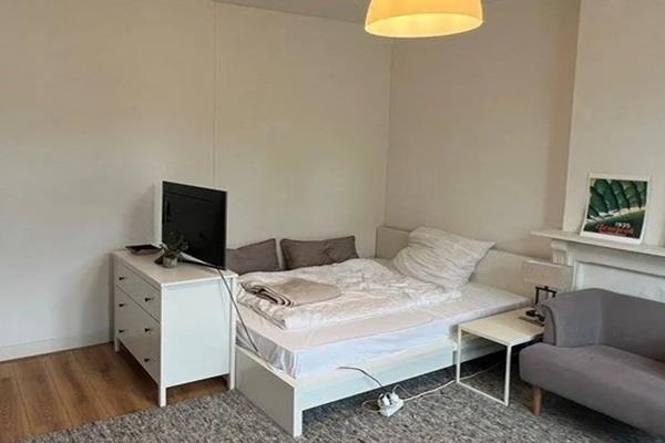 Hier bevinden zich 2 studentenkamers met parketvloer, verder op deze verdieping separaat toilet en keuken met 2x ingebouwde gaskookplaat, 2x vaatwasser, 4x ingebouwde koelkast (voor iedere kamer 1) en verder toegang tot de kelder met de wasmachine. Verder geeft de keuken toegang tot een grote tuin.