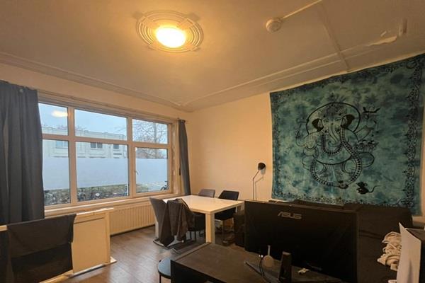 Deze studentenkamer bevindt zich in een groot studentenhuis aan de Trouwlaan in Tilburg.