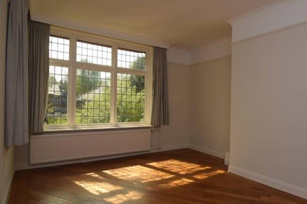 Deze kamer is circa 16m² en ligt aan de achterzijde. Je hebt mooi uitzicht op de tuin en er zijn nog karakteristieke glas in lood ramen aanwezig.
