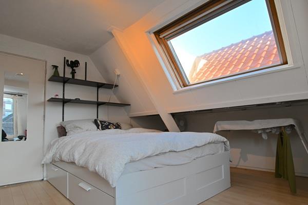 De kamer is gelegen aan de achterzijde van de woning. De kamer heeft aan twee zijden ramen waardoor er veel natuurlijk daglicht binnenkomt. Naast de kamer bevindt zich de badkamer welke voorzien is van douche en wastafel, tevens bevindt zich hier het toilet. Op de eerste etage bevindt zich de keuken die een moderne uitstraling heeft en van alle gemakken is voorzien. Vanaf de keuken is er toegang tot het ruime dakterras waar je zomers heerlijk kan zitten. Alle voorzieningen worden gedeeld met drie medebewoners.