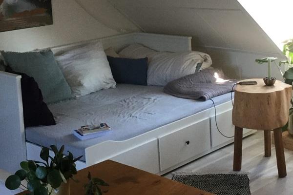 Deze ruime kamer van 30m2 wordt gemeubileerd opgeleverd (1 bed, 1 tafel en 2 stoelen)