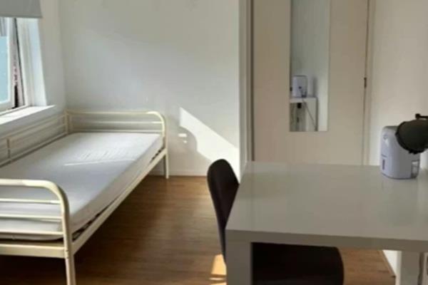Gezellig en goed onderhouden met een bed, kledingkast, bureau en verlichting