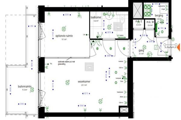 De woonkamer is ruim opgezet en wordt voorzien van een moderne open keuken. Aan de rechterzijde wordt een glazen afscheiding geplaatst, waardoor een stijlvol slaapgedeelte ontstaat. Zowel vanuit de woonkamer als vanuit de slaapkamer is er toegang tot het balkon, waar u kunt genieten van het prachtige uitzicht.