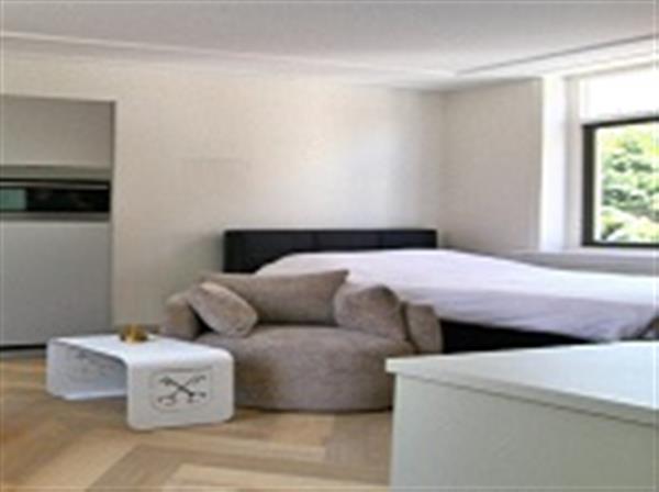 Via uw eigen voordeur bereikt u de woon- slaapkamer met direct links, een grote raampartij waarbij u uitkijkt op de andere woningen in het kleine straatje dat vrij van verkeer is. De open keuken bevindt zich aan de achterwand van deze ruimte terwijl rechts een comfortabele bed is geplaatst met uitkijk aan de achterzijde van het gebouw. De badkamer met regen shower toilet voorziening en wasmachine bevindt zich verscholen aan de rechterzijde. De badkamer is fraai afgewerkt met modern tegelwerk en sfeervolle spotverlichting.