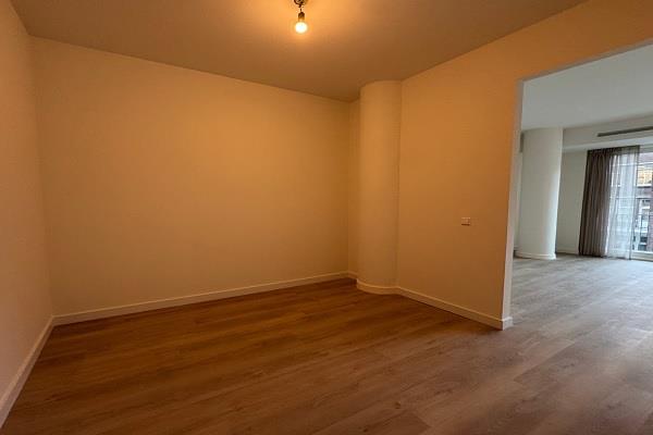 De woonkamer is ruim opgezet en geniet van veel lichtinval dankzij de grote raampartijen en het balkon aan de achterzijde van het complex.