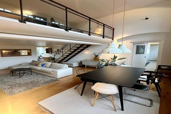 De entree van de bevindt zich op de tweede verdieping, waar u binnenkomt in de ruime hal met toilet. Het hoge plafond en de grote raampartijen (bijna 5 meter hoog) in de woonkamer springen direct in het oog en zorgen voor een prettige lichtinval. De speelse indeling maakt dit loft extra bijzonder.