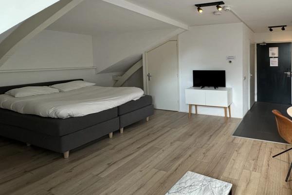 Gezamelijke entree. Entree op de 1e/2e of 3e etage. Entree van de studio's zijn aan de Eendrachtweg met fantastisch uitzicht over Eendrachtsplein. De studio's zijn uitgerust met een tweepersoonsbed, tweezitsbank, bijzettafel. TV. De keuken is voorzien van een waterkoker en koelkast * optioneel een magnetron te plaatsen. De ruime luxe badkamer is voorzien van een ligbad, wastafel met spiegel en toilet. Bij de studio zit tevens een tuin.