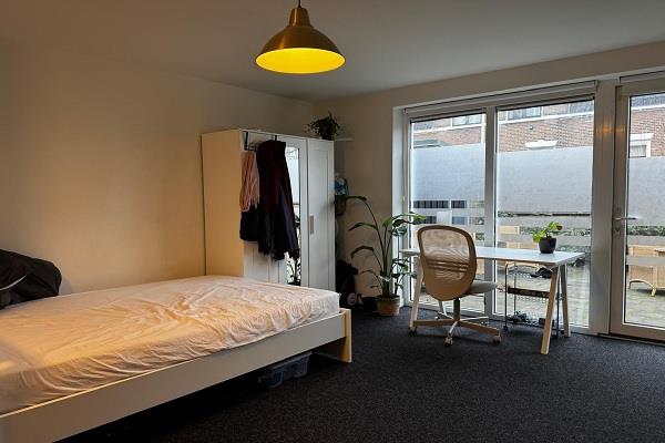 Deze semi-zelfstandige studio is gelegen op de begane grond aan de achterkant van het pand, de studio grenst aan de tuin die gedeeld wordt met 1 mede bewoner. In de bevindt zich jouw eigen keuken als toilet.