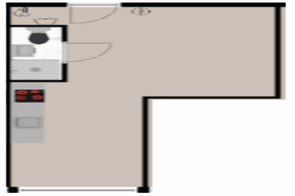 De studio is efficiënt ingedeeld en biedt een comfortabele leefruimte. De moderne keuken is voorzien van een vaatwasser, kookplaat, afzuigkap en aansluitingen voor een wasmachine, zodat alles wat je nodig hebt binnen handbereik is. De compacte badkamer is volledig uitgerust met douche, toilet en wastafel.