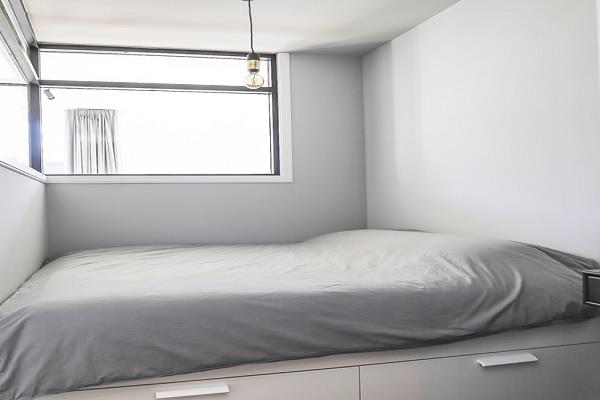 Woonkamer met lounge en dining gedeelte, comfortabel twee persoonbed, open keuken welke is voorzien van alle wenselijke inbouw apparatuur.