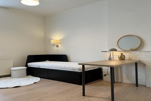 Deze fijne studio is gelegen op de begane grond. De studio beschikt over een woon-/slaapkamer met open keuken. De keuken is voorzien van een spoelbak, 2-pits kookplaat en afzuigkap. De koelkast is officieel niet bij de meubilering inbegrepen, maar blijft aanwezig. De volledig betegelde badkamer is voorzien van toilet en douche. De wasmachine is aanwezig.