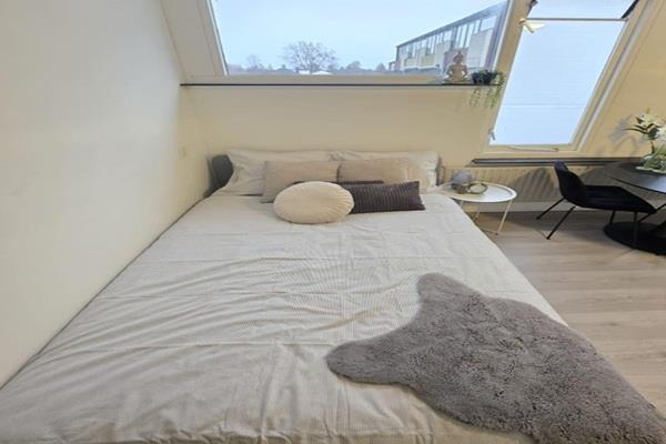 -De woon/slaapkamer beschikt over een mooie laminatenvloer